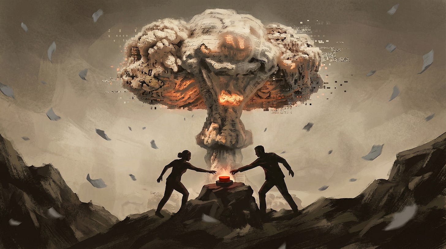 The nuclear option feels righteous. It feels proportionate. It feels like you’re taking the threat seriously, unlike all those complacent people who don’t see what you see.
